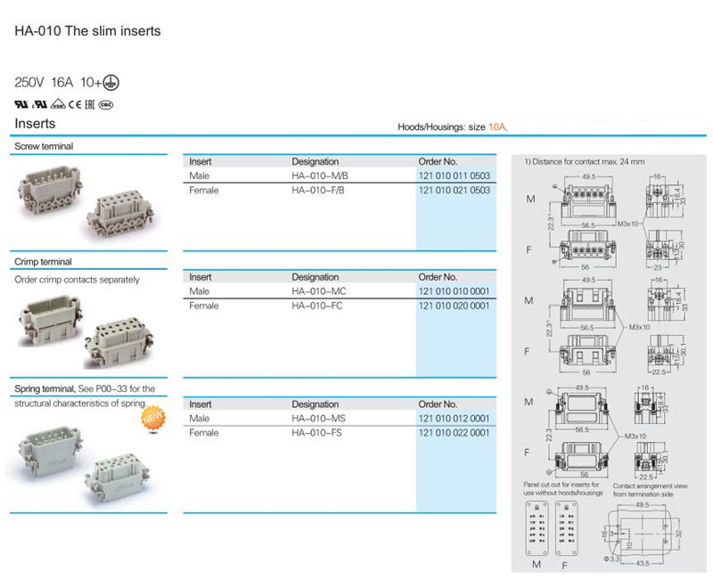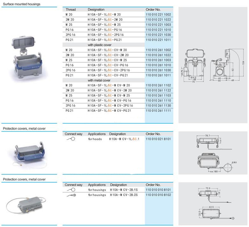 • HE 10 pin heavy duty wire connectors male female cable connector with cap